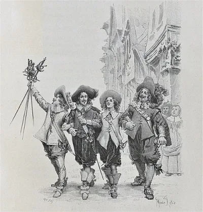 The Three Musketeers (French: Les Trois Mousquetaires) is a French historical adventure novel written and published in 1844 by French author Alexandre Dumas. It is the first of the author's three d'Artagnan Romances. As with some of his other works, he wrote it in collaboration with ghostwriter Auguste Maquet. It is in the swashbuckler genre, which has heroic, chivalrous swordsmen who fight for justice.