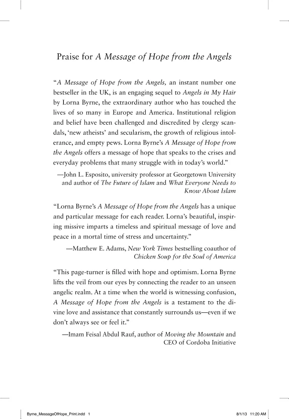 Number one international bestselling author Lorna Byrne, an Irish mystic who gives hope and a sense of peace (The Times, UK), shares the encouraging messages she receives from angels to help carry us through life's challenges. Lorna Byrne sees and speaks to angels physically every day, communicating with them as clearly as the rest of us see people. In A Message of Hope from the Angels, Lorna comforts and consoles us with the knowledge that, no matter how alone you might feel, you always have a guardian angel by your side. As she writes, These days I see a lot of angels holding lights in front of people, helping to encourage them. I see so much to be hopeful about and in this book I pass on these messages of hope. Through this inspiring and uplifting book, Lorna reveals how we can call on the help of angels to carry us through the difficulties that we all inevitably face, including loneliness, depression, stress, financial strain, heartbreak, the death of a loved one, or feelings of inadequacy. No matter what obstacles you encounter, you can always call on the support of angels to make your life happier and more fulfilling.