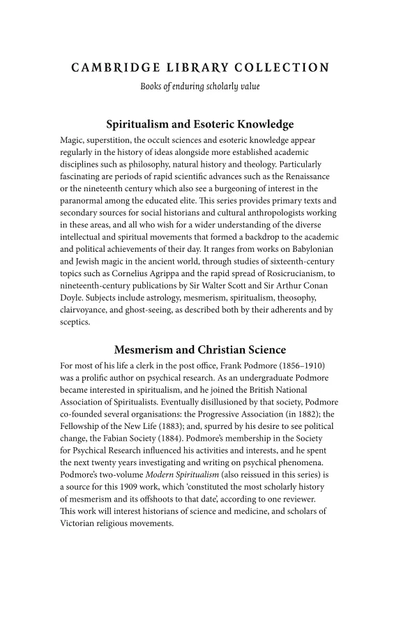 Published in 1909, Mesmerism and Christian Science explores the relationship between science and spiritualism through history.