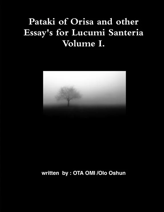 This book Pataki of Orisa and other Essay's for Lucumi Santeria. Contains Pataki of Odu , Essays on Orisha written by Ota Omi. OTA OMI /(woofy), has been a diligent writer of Pataki on the internet for years and Highly respected in the Santeria Community. This is his first book published here on Lulu, and he promises to continue writing more volumes and other works. A must have for your santeria Libraryataki of Orisa and other Essay's for Lucumi Santeria. Contains Pataki of Odu , Essays on Orisha written by Ota Omi. OTA OMI /(woofy), has been a diligent writer of Pataki on the internet for years and Highly respected in the Santeria Community. This is his first book published here on Lulu, and he promises to continue writing more volumes and other works. A must have for your santeria LibraryISBN 978-0-557-08376-3