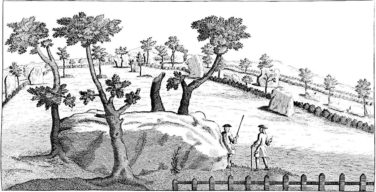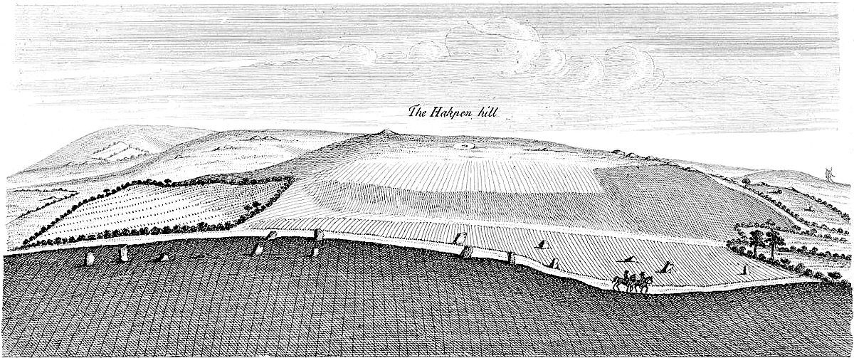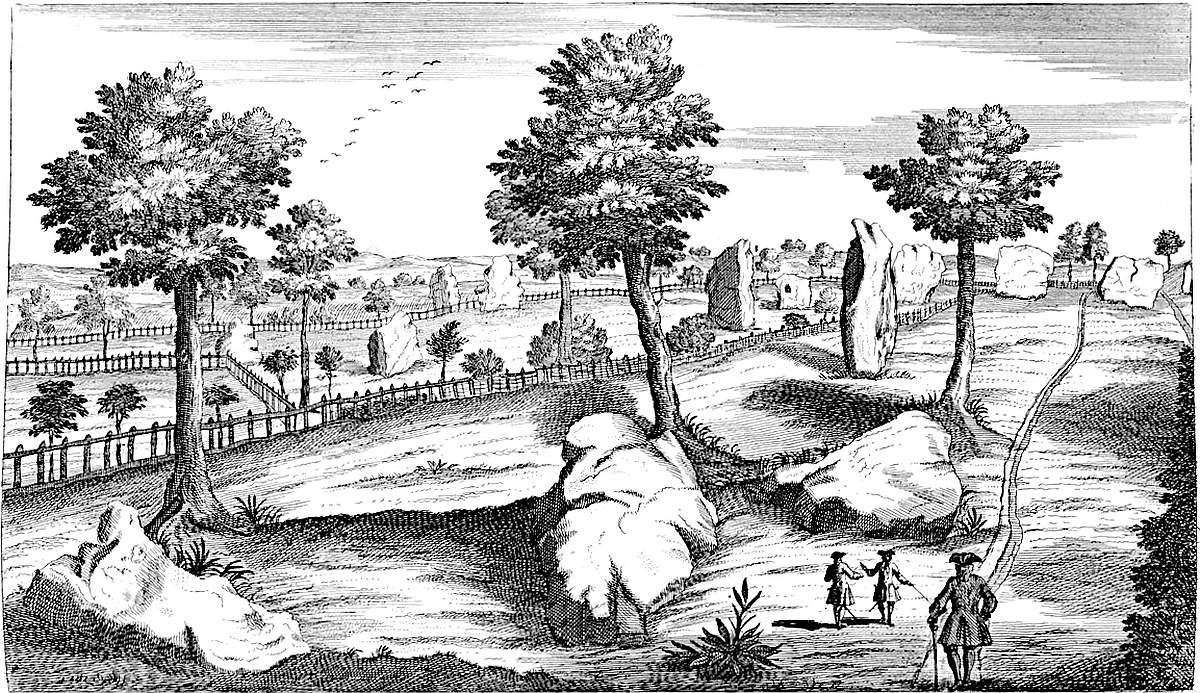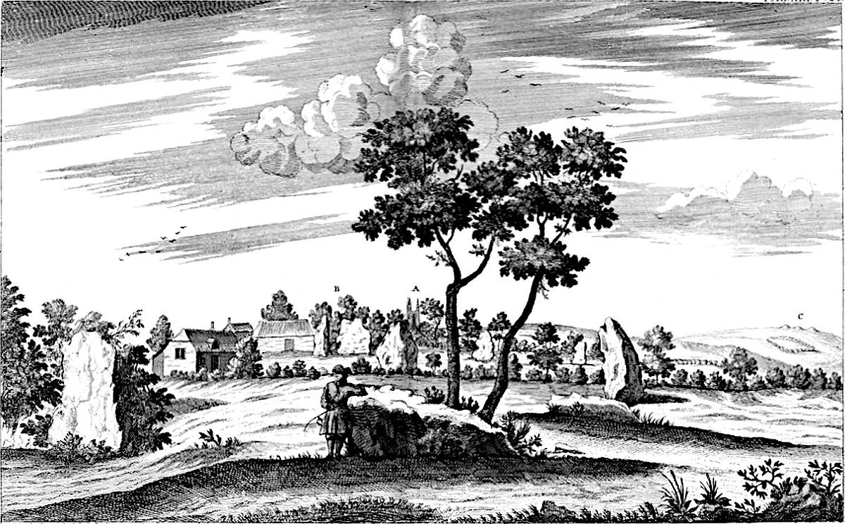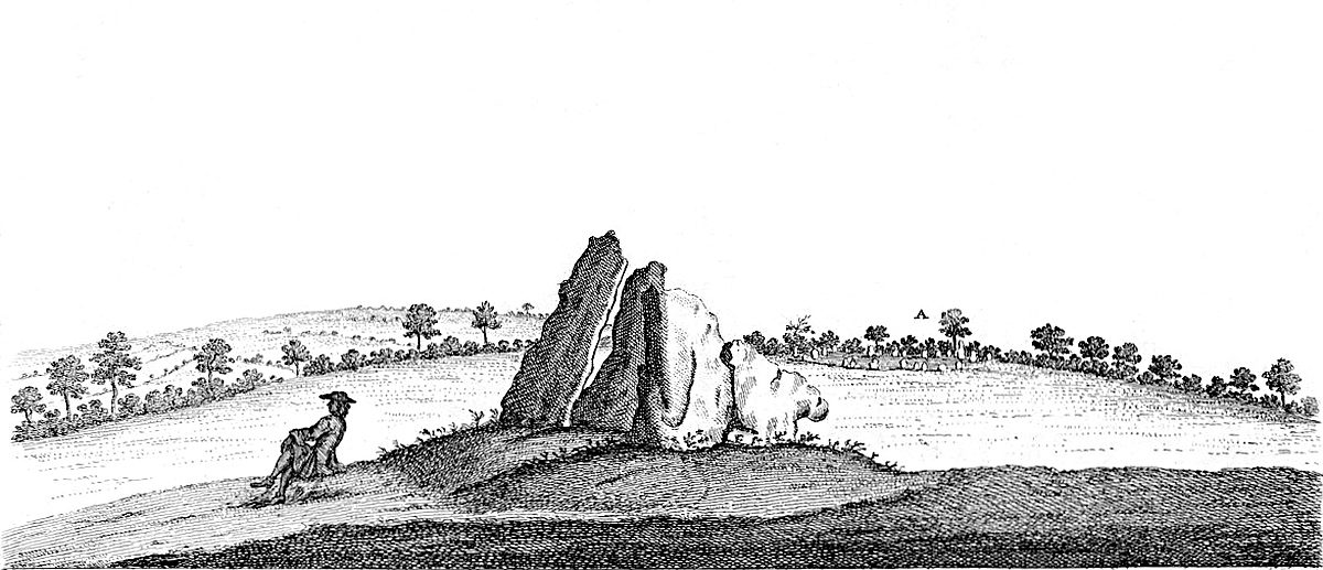 Near the arch-druid’s barrow, by that call’d the Kingstone, is a square plat, oblong, form’d on the turf. Hither, on a certain day of the year, the young men and maidens customarily meet, and make merry with cakes and ale. And this seems to be the remain of the very ancient festival here celebrated in memory of the interr’d, for whom the long barrow and temple were made. This was the sepulture of the arch-druid founder. At Enston, a little way off, between Neat Enston and Fulwell, by the side of a bank or tumulus, stands a great stone, with other smaller. ’Tis half a mile south-west of Enston church. A famous barrow at Lineham, by the banks of the Evenlode.