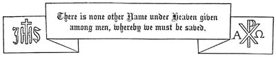 It is surprising how much the real meaning of the letters IHS, or IHC, has been lost sight of, emblazoned as it is on the pulpit-coverings, altar-cloths, and windows of our Churches. The interpretation has been guessed at, or supposed to signify the initial letters of the following sentences:—"Jesus Hominum Salvator"—Jesus, Saviour of men. "Inspiration (of the) Holy Spirit;" or, "Jesus Humanitatis Consolator"—Jesus, Comforter of mankind. None of these interpretations are correct.