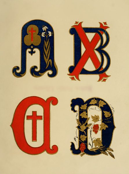 Instead of furnishing copies of antique capitals, of which so many excellent collections now abound, it has been thought more useful to supply the reader with some specimens of emblematic letters (which may suggest other similar designs), suitable for particular texts, several of which are also subjoined.