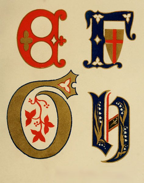 It is advisable, if possible, to select the capitals from the same alphabet; but if all that you require for the text do not suit your taste, there is no absolute objection to the introduction of others, subject to certain conditions. On no account mix the letters of different countries; the Italian, for instance, with the Saxon; they would be utterly incongruous. Also, as a writer amusingly observes, "Avoid letting your work appear as though it had been begun in the tenth century, and only completed in the sixteenth, or, as I have once or twice seen, vice versâ."[2]