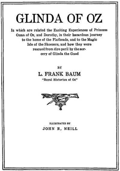 Glinda of Oz: In Which Are Related the Exciting Experiences of Princess Ozma of Oz, and Dorothy, in Their Hazardous Journey to the Home of the Flatheads, and to the Magic Isle of the Skeezers, and How They Were Rescued from Dire Peril by the Sorcery of Glinda the Good