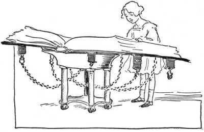 This Book is one of the greatest treasures in Oz, and the Sorceress prizes it more highly than any of her magical possessions. That is the reason it is firmly attached to the big marble table by means of golden chains, and whenever Glinda leaves home she locks the Great Book together with five jeweled padlocks, and carries the keys safely hidden in her bosom.