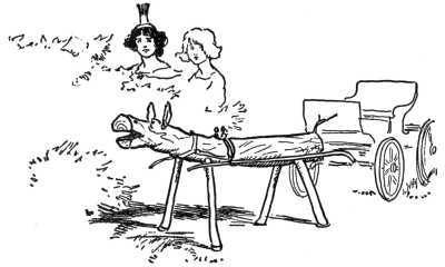 They returned by the road over which Ozma and Dorothy had come, stopping to get the Sawhorse and the Red Wagon where they had left them.