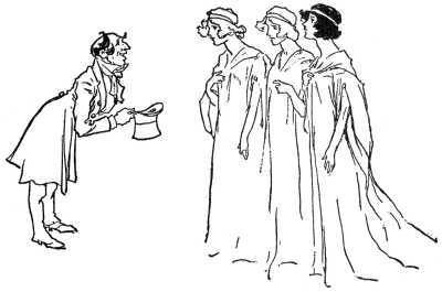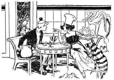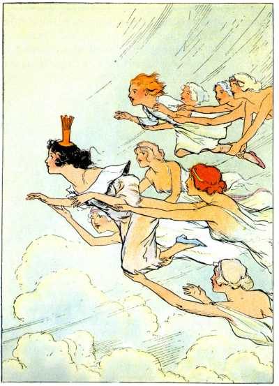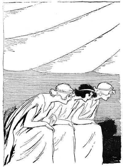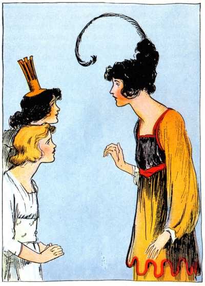 The maids of honor had risen and stood with bowed heads to greet the royal Ozma, while Glinda came forward with outstretched arms to greet her guests.