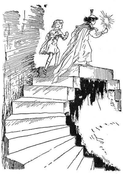 When the party reached the mountain Ozma and Dorothy showed them how to pass around the invisible wall—which had been built by the Flatheads after the Adepts were transformed—and how to gain the up-and-down stairway that led to the mountain top.