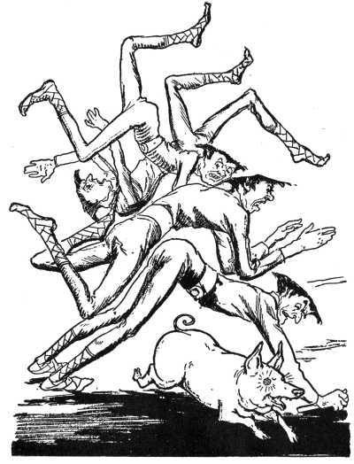 The Golden Pig, which ran grunting about the streets, with no brains at all, was disenchanted by Glinda, and in her woman's form was given brains and a round head. This wife of the Su-dic had once been even more wicked than her evil husband, but she had now forgotten all her wickedness and was likely to be a good woman thereafter.