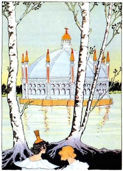 "Another part of this machinery," explained the white-haired Adept, "is used to extend the bridge from the island to the mainland. The steel bridge is in 260 a room much like that in which the boats are kept, and at Coo-ee-oh's command it would reach out, joint by joint, until its far end touched the shore of the lake. The same magic command would make the bridge return to its former position. Of course the bridge could not be used unless the island was on the surface of the water."