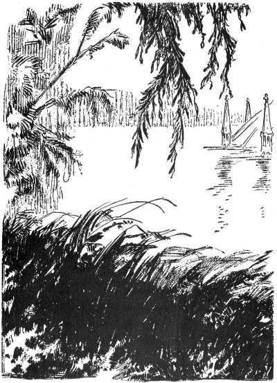 "The island," said Glinda thoughtfully, "rests on a base of solid marble. When it is submerged, as it is now, the base of the island is upon the bottom of the lake. What puzzles me is how such a great weight can be lifted and suspended in the water, even by magic."
