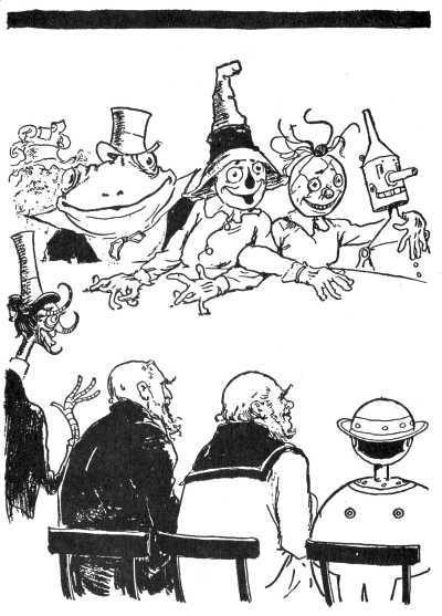 "But see here!" cried Dorothy, "it's against the law for anyone but Glinda and the Wizard to work magic in the Land of Oz, so if these two strange people are magic-makers they are breaking the law and ought to be punished!"