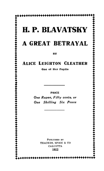 H. P. Blavatsky; A Great Betrayal