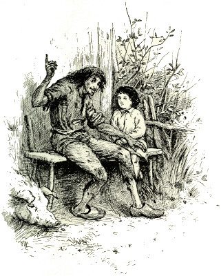 'Eh! but what is this?' he cried, in his high cracked voice as he flung down the sacks, and stood by the little lad in the doorway. 'Remember my ears are so quick I can hear the grass grow. Just now I heard the best mother in the world call her little boy to go indoors, and here he stands still on the threshold. If you do not go in do you know what will happen, eh?'