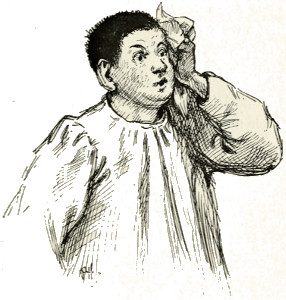 Paqualin, as he stood there silent and watchful, with his sunken eyes, ungainly figure, and dilapidated garments, seemed strangely out of place. He[Pg 150] shaded his eyes with his hand, for the light dazzled him, as he looked for a minute or two at the sleeping mother. Then he went quietly across the kitchen and up the wide, wooden staircase.
