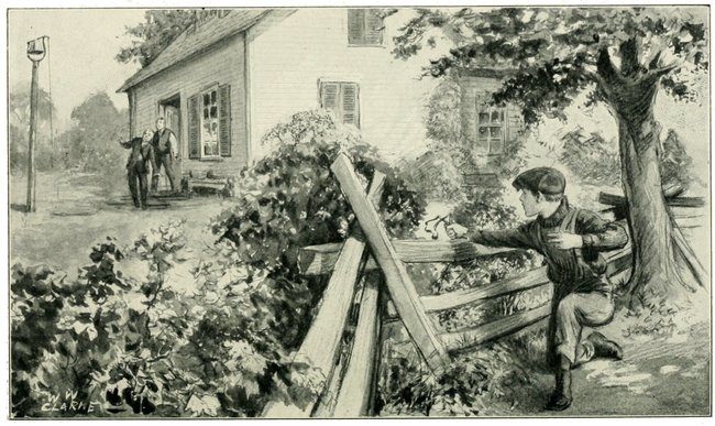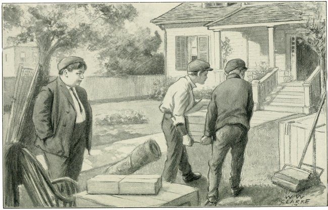 Plunk and Binney and I weren’t long getting together, and as soon as we thought it was polite we went hurrying over to Mark’s. Plunk and Binney wanted to hear all about it again, and to have Mark do the telling. We felt it was the biggest thing that ever happened in Wicksville, and I can tell you we were pretty proud to be mixed up in it. The town was all excited, and folks kept coming to call on Mrs. Tidd in a steady stream until she was so nervous and flustered it wasn’t safe for us boys to stay around. Mrs. Tidd was the kind of person that wanted to do her regular work every day, no matter what happened; and she didn’t have a speck of patience with all the inquisitive folks that came traipsing over to ask about it, and get a look at Mark as though they hadn’t been seeing him every day for almost a year. She kept getting sharper and sharper, and more anxious and more anxious to get to her work, until Mark says to us that we’d better dig out before the explosion came.