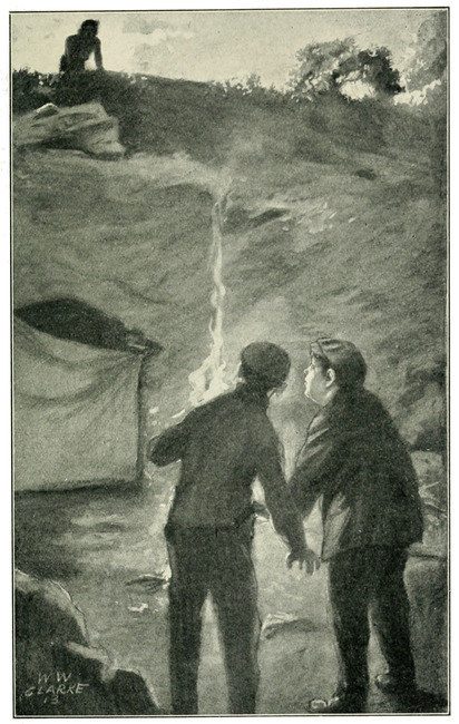 Mr. Whiteley turned in then and told him the whole business. As he went along describing how Mark and I had gone after the engine Mr. Tidd kept looking at Mark and blinking; and pretty soon he stretched out his hand and took a hold of Mark and pulled him over close, hanging onto him tight. When Mr. Whiteley told about the way we stood the siege at the cave and fought Batten and Bill Mr. Tidd patted Mark soft-like with his hand and looked up at him that proud you’d never believe it. I felt funny to see him sitting there so kind of honest and simple and good. My throat ached and—well, I walked over and made believe I was looking out of the window.
