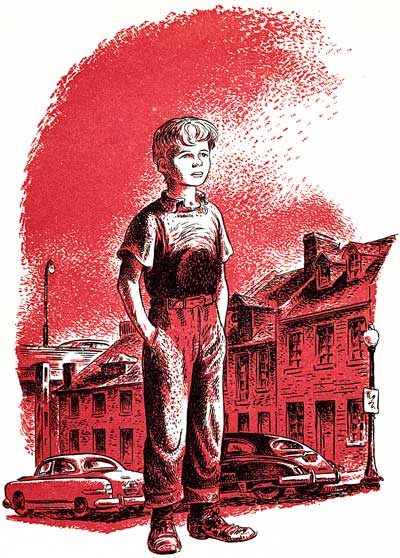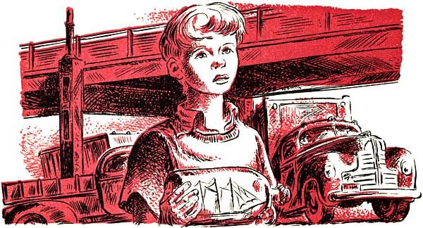 Chris made up his mind to see what might be in the Pep Boys' store, far down the hill and along traffic-filled M Street. Somehow the tawdry bustle of this street, with its many shops, appealed to the boy who carried misery inside him like a cold, heavy stone. Running, he started down the hill between the lines of old brick houses, left Rock Creek Park behind him, and turning to the right up M Street, reached the hardware glitter of The Pep Boys'.