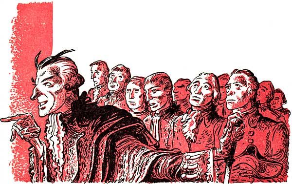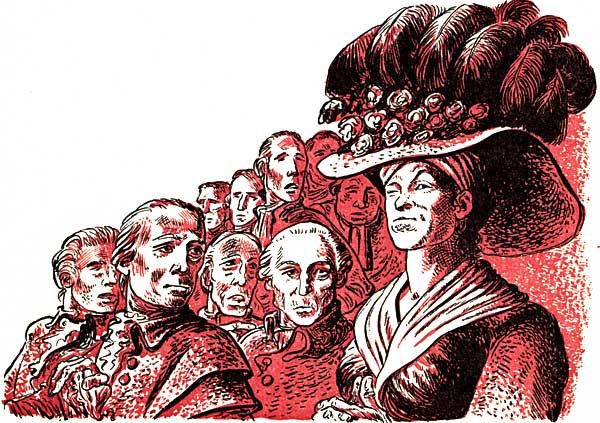 "Ah now, Master Cilley," coaxed Becky, her hands on her hips and the soup ladle she still held standing out at right angles, "you will fade away into a wraith, my good man, so you will! Do you not eat a morsel nor a mouthful, and die in the night, how shall I bear to live with my conscience thereafter, tell me that?"[262]