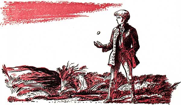 Chris opened his bedroom door, pulling out from his pocket the first thing his fingers hit on, and as he went downstairs whistling, "Farewell and Adieu, to you Spanish Ladies," he tossed and caught, and tossed and caught again, an old silver button burnt black in a fire.