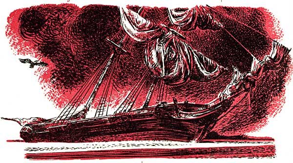 As the gull, he swung up into the air away from the Mirabelle, and began shaking the dust from the open pouch on the sea around the Vulture. By the time the bag was empty, a mist impossible for any helmsman to see through had surrounded the battered ship from stem to stern, and in despite of a freshening wind, was rising steadily to the top of its one remaining mast.