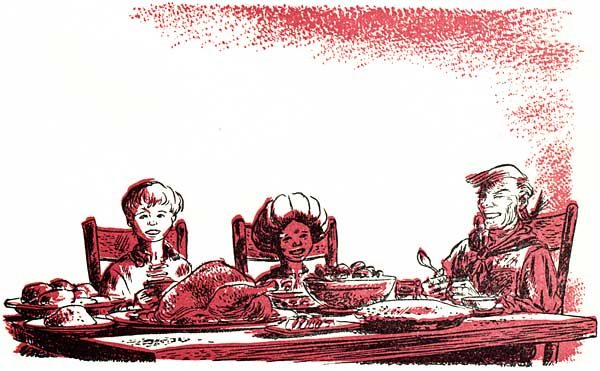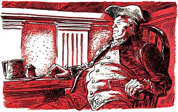 Chris laughed. Ned Cilley, picking his teeth with his habitual ship's nail, was already falling asleep, and Amos, his head on one hand, propped himself up amid a jumble of empty plates. Peacefulness and content lay everywhere in the room, warm as the firelight and as pervasive.