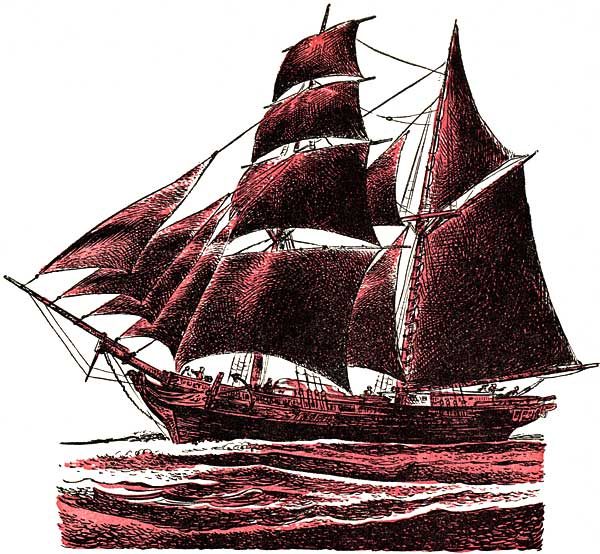 Taking the pouch in its beak the gull soared high above the two vessels, now drifting imperceptibly apart. Sounds of violent fighting could still be heard inside Claggett Chew's cabin, but the pirate crew seemed grateful enough to fall to the bloody decks to rest and care for their wounds. As the two ships finally stood clear of one another, a resounding cheer of victory rose from the courageous members of the Mirabelle. Their shirts ripped into hasty bandages, their bodies glistening with sweat and rusty with their own or their foes' blood, they were a bedraggled sight. Nevertheless, as they raised their arms or flung their caps into the air, flinging after the pirates a few last resounding epithets. Chris's heart swelled with emotion at the men he was proud to call his friends.