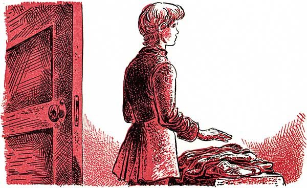 Without a word, Chris took the folded clothes that seemed so unfamiliar off the stool and dressed behind the other leather chair, his lower lip trembling. Mechanically, as boys will, he shifted everything from his pockets to those of the trousers he had just put on. With careful slow gestures he folded up the knee breeches, the full-sleeved shirt, the long white hose[267] and silver buckled shoes, the flare-backed jacket last of all, and put them where his clothes had been.