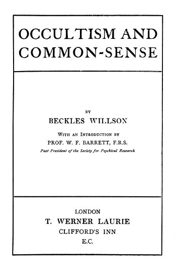 When I first ventured into the wide and misty domain of Occultism, with a light heart I set forth and an open mind. My sole aim was to ascertain, as far as the means at the disposal of an ordinary man with little of the mystic in his composition would allow, what degree of probability attached to published phenomena, which the ordinary laws of Nature, as most of us understand them, could not satisfactorily explain.