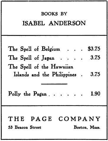 But Boris never came back. After reading the letters and surmising who he was, I became greatly interested and tried to trace him through the interminable processes of the law. Everywhere I was baffled by blank stares, and “Pardon, madame,” or “We do not recollect this case, madame.” Perhaps he was swiftly and secretly executed. Who knows? Surely he was Polly’s suitor in the Roman days of years ago. How they renewed their friendship, I cannot[Pg 236][Pg 237] surmise. Possibly the little blonde lady may be in hiding for military reasons; perhaps our last meeting was the hour of her death. But I am left a reluctant legatee of her lover’s letters and those written by her gay young self.