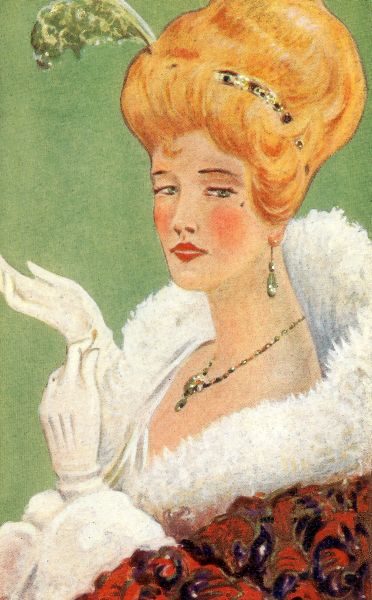 As I passed an open door, I heard a woman call loudly, “Oh, won’t somebody come and help me?” I went in to find, as I turned my flashlight about the room, a pretty, golden-haired lady, an American, with big deep blue eyes, struggling to get into a black dress. One of her arms was in a sling and she was having trouble. She looked ill and weak, but seemed a perfectly plucky and determined little person. I slipped her heavy coat over her shoulders, wondering, at the time, where I had seen her before. As we started for the door, she remembered something she had left, and said, “Wait—take this,” putting a small morocco bag into my hands, while she ran back to find something she wanted.