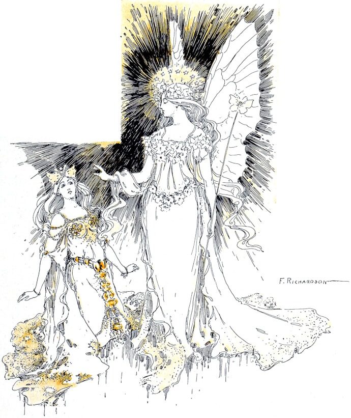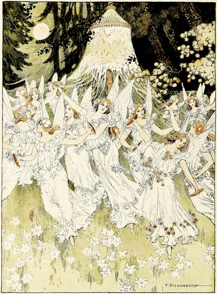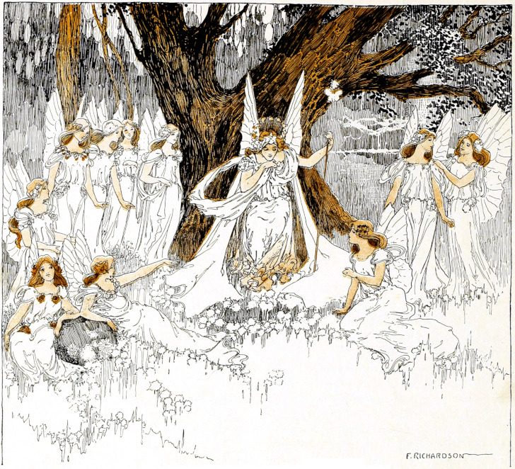 “We might create something, by virtue of our fairy powers,” suggested one who reclined at the feet of the queen.