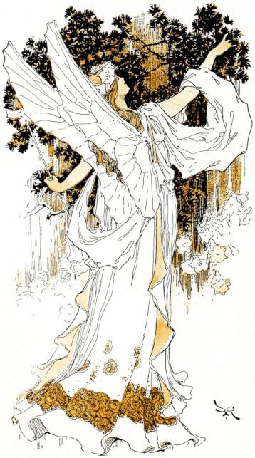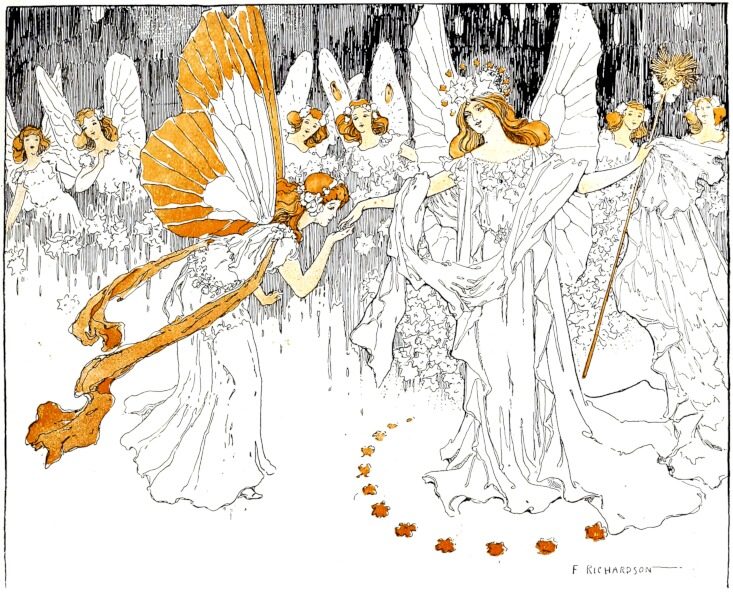 “That is a hard task,” answered one pretty sprite, opening and folding her wings slowly—as a lady toys with her fan. “We have lived through so many ages that we long ago exhausted everything that might be considered a novelty, and of all our recreations nothing gives us such continued pleasure as dancing.”