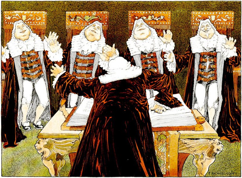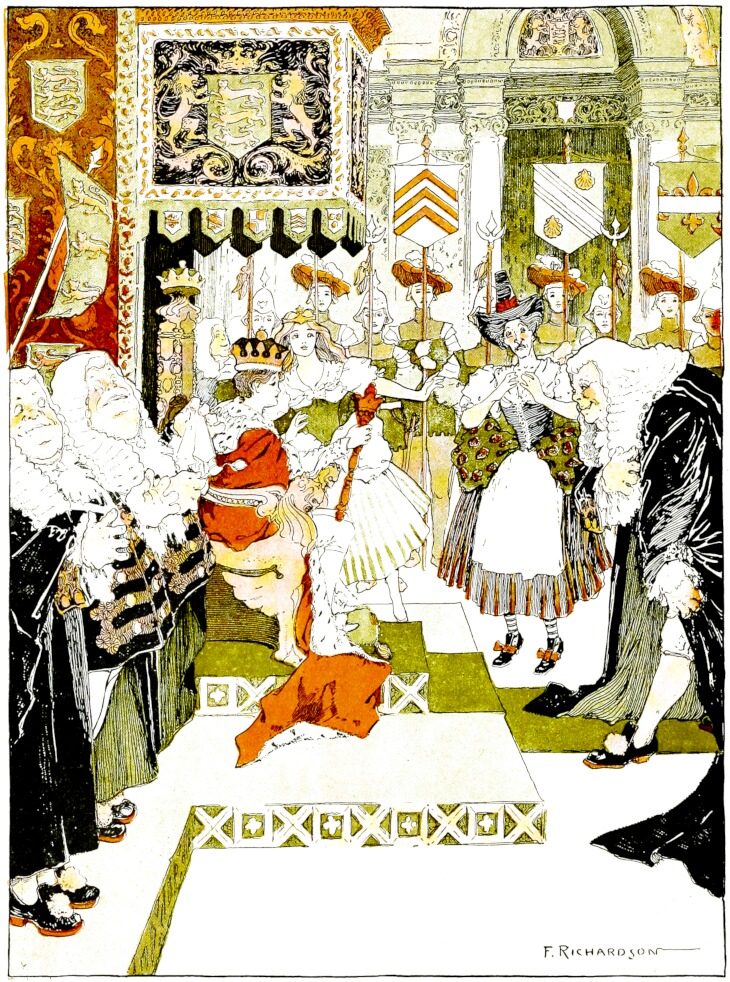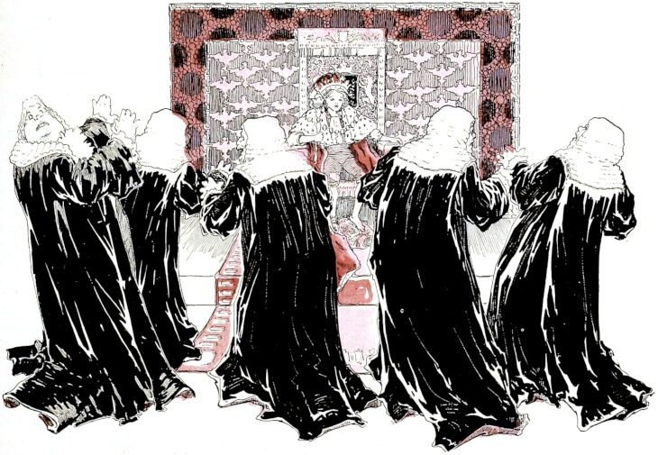 But at this there arose quite a murmur of protest on all sides, which the queen immediately silenced with a wave of her royal hand.