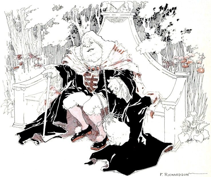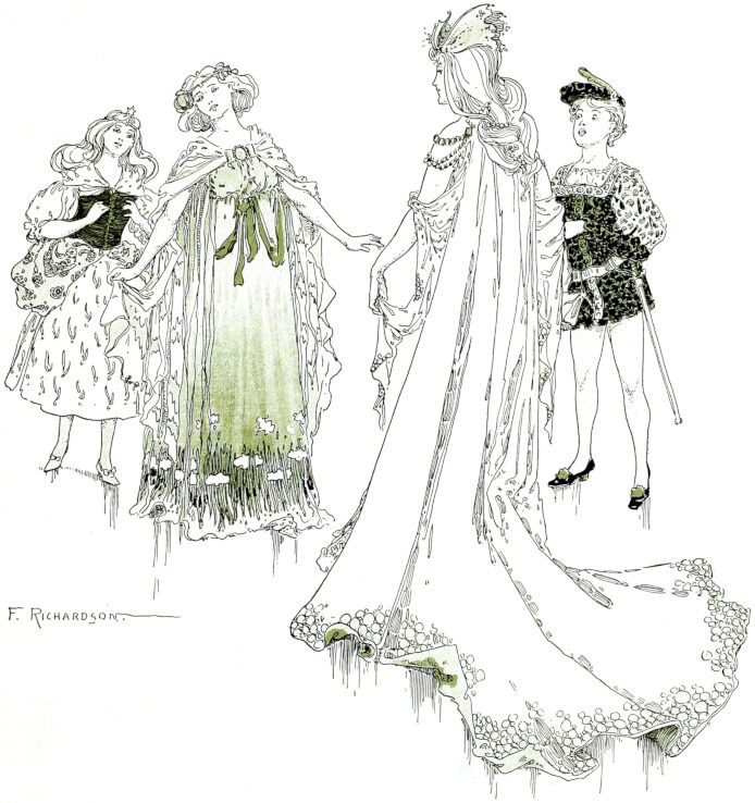 On this especial night, however, they were not dancing. For the queen had seated herself upon a little green mound, and while her band clustered about her she began to address the fairies in a tone of discontent.