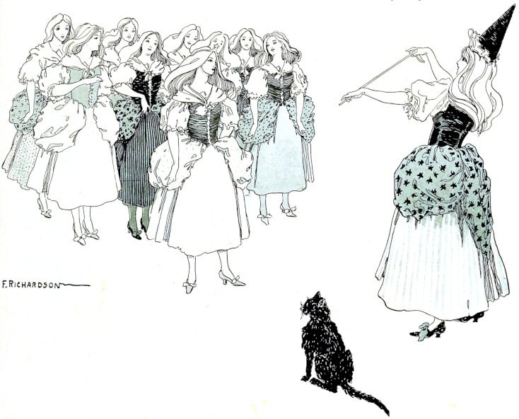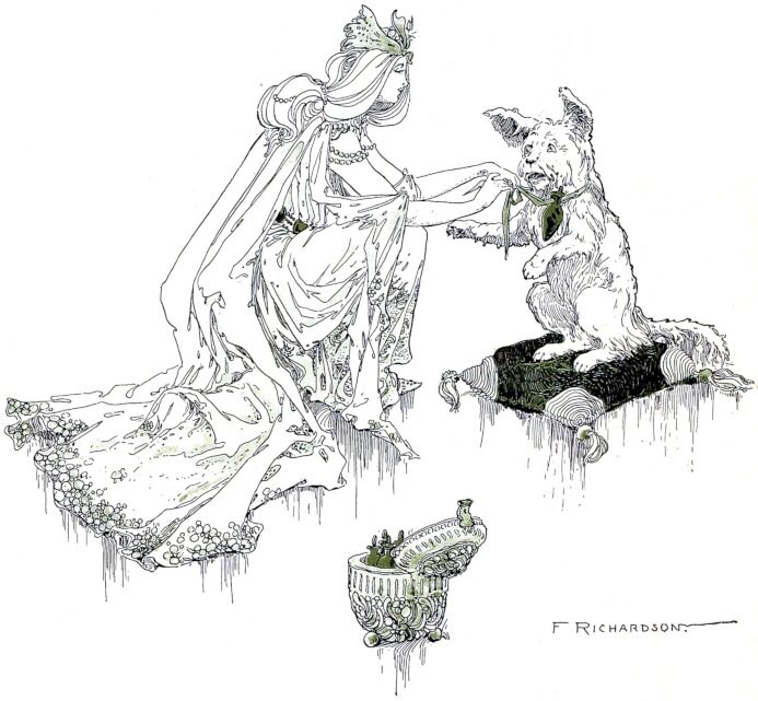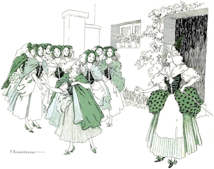 “I am tired of dancing, my dears,” said she. “Every evening since the moon grew big and round we have come here to frisk about and laugh and disport ourselves; and although those are good things to keep the heart light, one may grow weary even of merrymaking. So I ask you to suggest some new way to divert both me and yourselves during this night.”