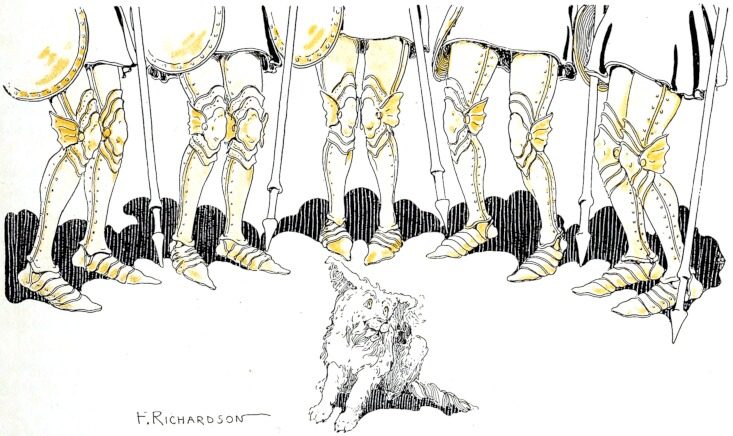 “They came at last into the possession of a great general who did not know their powers. So he wore them into battle one day, and immediately ran away, followed by all his men, and the fight was won by the enemy.”