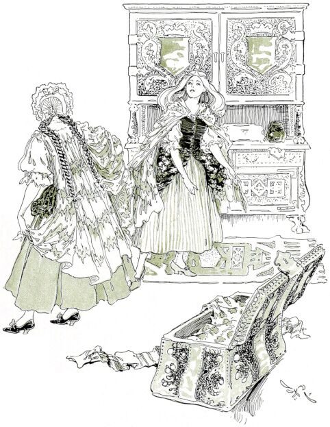 Princess Fluff had carried her silver chest back to the palace of her brother, and in it lay, carefully folded, the magic cloak. Being now fearful of losing it, she warned Jikki to allow no one to enter the room in which lay the silver chest, except with her full consent, explaining to him the value of the cloak.