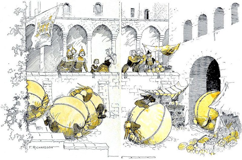 The Roly-Rogues had destroyed many things, but the servants of the palace managed to quickly clear away the rubbish and to decorate the banquet-hall handsomely.