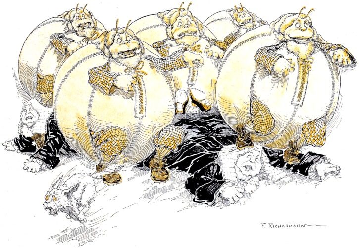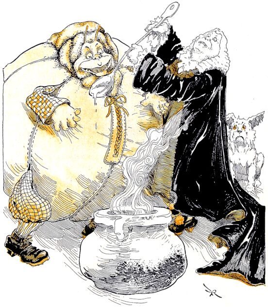 So every Roly-Rogue in the valley hurried to the palace kitchen for soup; and there were so many that it was noon before the last were served, while these became so impatient that they abused their slaves in a sad manner.