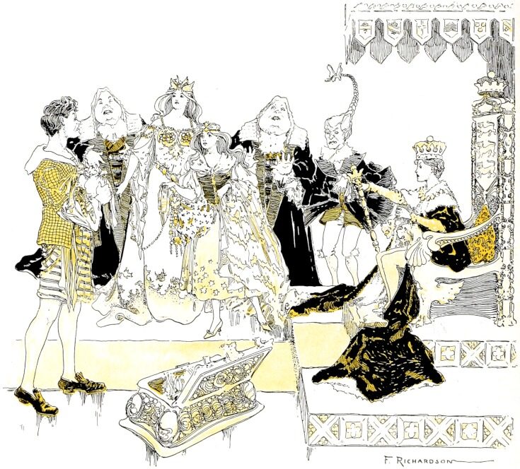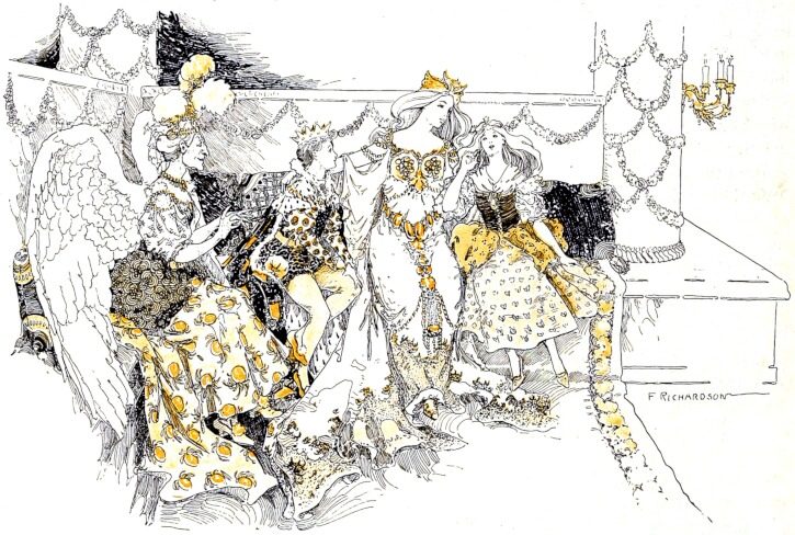 “That’s all right,” said the king; and, reëntering the palace, he ordered Jikki to make preparations to receive the witch-queen and her retinue.