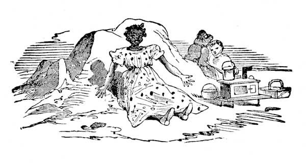 He came right out of the water and stood before Effie, dripping with wet, and bowing, and smiling, and scraping and twitching his cap, as much as to say, "Your most obedient servant, Miss, and what can I do for you this morning?" and he did say out aloud, "It's all right! Get up there"—pointing to his hump—"and I will carry you down safely, little maiden!"