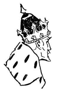 We were married on the morning of the third day. Such feasting, such dancing, such merriment,—and gifts innumerable;[230] but the best gift of all was a doublet, made with his left hand by the One-Armed Sorcerer from the skin of the witch’s wasp’s nest, fastened by the witch’s ten buttons sewed on with the genie’s hair; a doublet to preserve the wearer from all harm. And this, as the wedding dinner was nearing its end, the One-Armed Sorcerer, rising in his place, presented to me with a pretty speech, for which I thanked him.