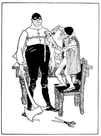 “My master,” he proceeded, “is, I must warn you, unable[4] to satisfy himself, in the matter now in hand, with less than absolute perfection. Already he has been disappointed in some eight other tailors, and he has learned of your superlative excellence with much hope; and in order that he may assure himself how well his report of you is justified, he has commanded me to entrust to you a small commission; to wit, to sew on this button.”