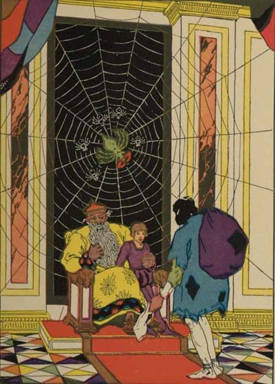 | The Prince receives the magic doublet—The Prince and his daughter set forth for Oogh—A strange encounter at the wayside well—The three blind ballad singers—The blind ballad singer displays the Shears of Sharpness—The strange conduct of the people of Oogh—The mansion in the ruined park—The solitary figure behind the spider’s web—The Prince watches the people’s behavior toward the boy—The man with the ball in the underground alley—The Prince sets out for his encounter with Babadag the Tailor—Babadag the Tailor, Goolk the Spider, and the eight tailors—The three blind ballad singers once more—The magic doublet protects the Prince against the Knitters of Eyebrows and against Goolk the Spider—The Prince’s daughter has beguiled the Shears of Sharpness from the ballad singers—A light flickers in the dark shop—The Prince’s daughter is gone, and the Prince makes a dash for liberty—Babadag the Tailor is conquered by his little son—The governor, being released, beholds the Prince’s daughter—The shearing of the Eyebrow—The skin of the Prince is black—The doom of the city of Oogh—The tailor’s son follows him into the burning city—The boy is found on the sill of his ruined home, alive—The eight tailors stand before them in a row—They meet the three blind ballad singers for the last time | 73 |
