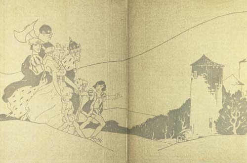 Well, the long and the short of it is, we reached my father’s castle late that night, under a starry sky. The attendants whom I had left in the forest had returned without me, and the castle was a-twitter with anxiety. But[229] when I led my fair lady into the great hall and presented her to my father, the King, and her nine sisters and the elderly Highwayman and the One-Armed Sorcerer stood bowing behind us, there was joy, I can tell you, and the rafters rang again.