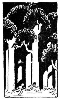 He threw the button upon the ground, laughing, and took from within his gown a leather pouch, from which he sprinkled upon the button a black powder; and then he began to speak, in a loud voice, words which I could not understand, in the midst of which he picked up the button, now crusted with black; and still repeating his strange words, he swung his arm, and with a loud cry flung the button into the branches of the nearest tree; and there, hanging on to a branch of the tree, trying desperately to keep from toppling off, was the old witch herself.