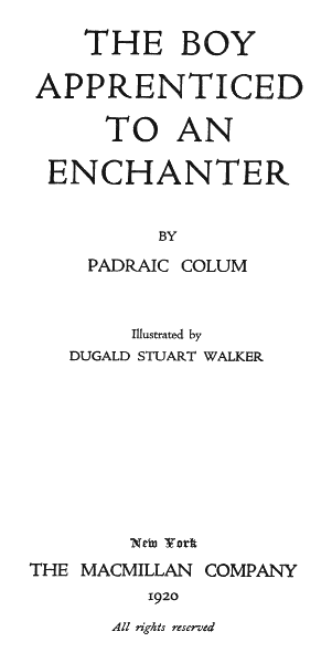 The Project Gutenberg eBook, The Boy Apprenticed to an Enchanter, by Padraic Colum, Illustrated by Dugald Stuart Walker