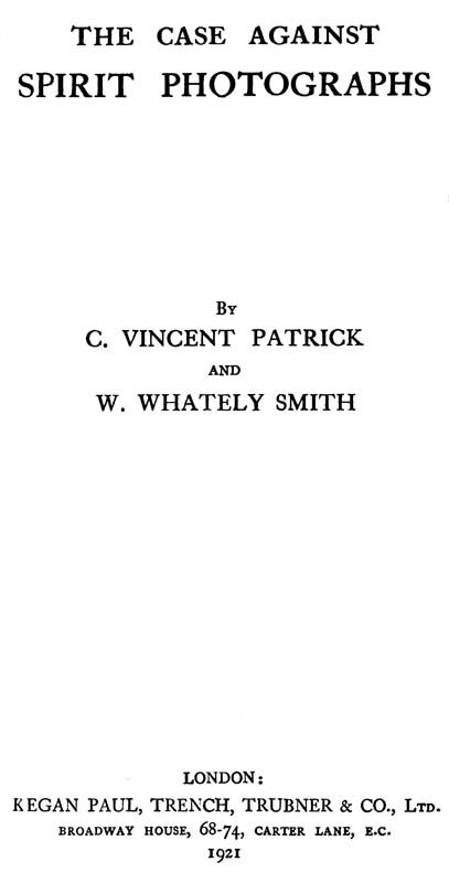 | IV. | Spirit Photographs Obtained by Amateurs (C. Vincent Patrick) | 31 |